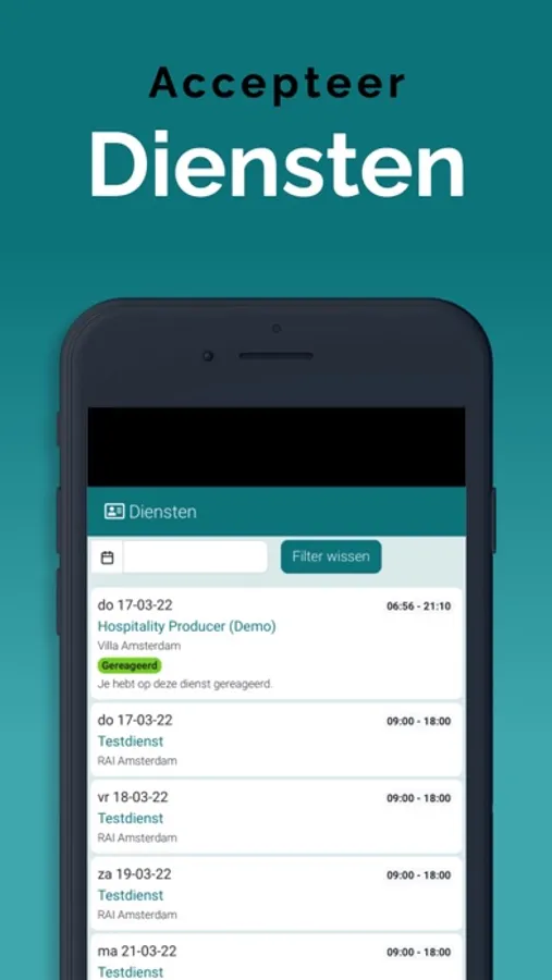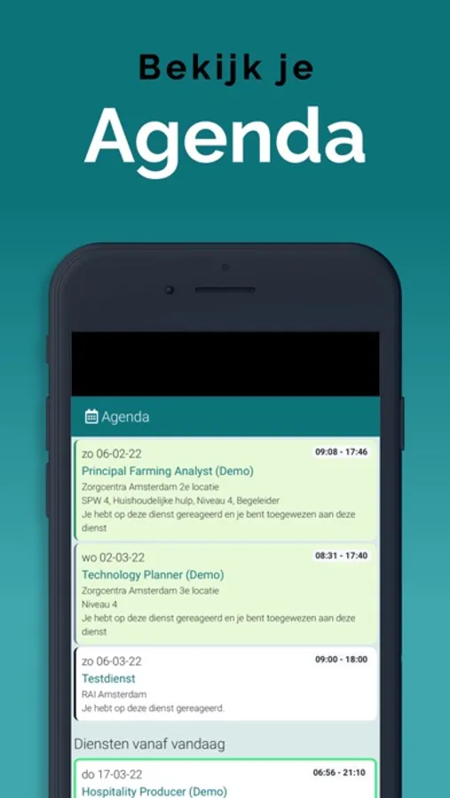 De App is gekoppeld aan het systeem waardoor informatie altijd up-to-date is, via een overzichtelijk dashboard. Bovendien komen belangrijke meldingen, als nieuw beschikbare opdrachten, via een push melding binnen op het apparaat. Zo zie je niets over het hoofd. Ook wijzigingen worden direct zichtbaar, ook in de agenda. Je bent dus altijd op de juiste plaats aanwezig.