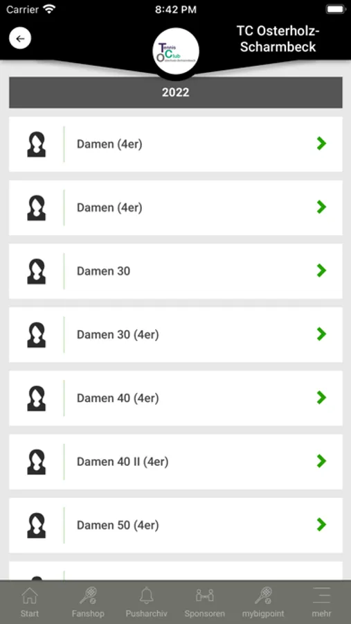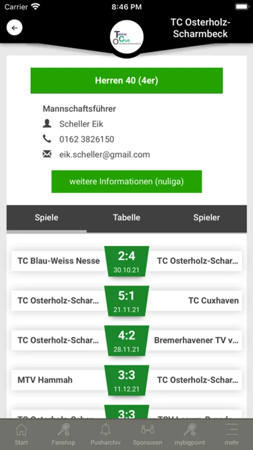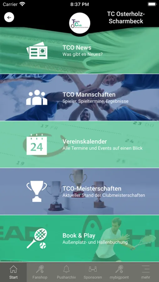 In der TC Osterholz-Scharmbeck App findest Du folgende Informationen:
