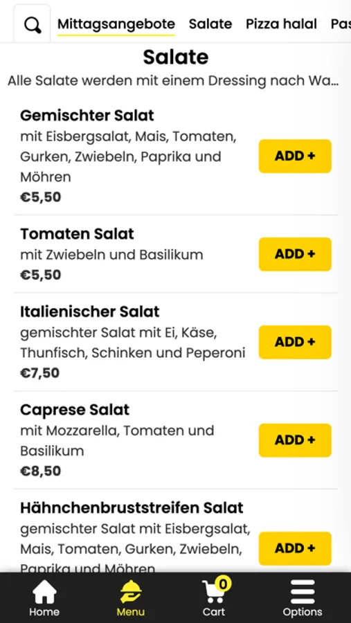- Durchsuchen Sie die Speisekarte des Restaurants und sehen Sie sich alle anpassbaren Optionen im Voraus an