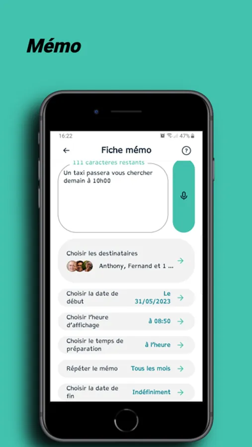 The application is at the service of caregivers and for the benefit of the person with limited autonomy. The kilometers that separate them are no longer a problem because the caregivers can supervise the tablet of the person in need for help remotely and be reassured with a click on his smartphone. While the person being helped can join his caregivers by video or by recording a video, on a daily basis as well as in priority situations.