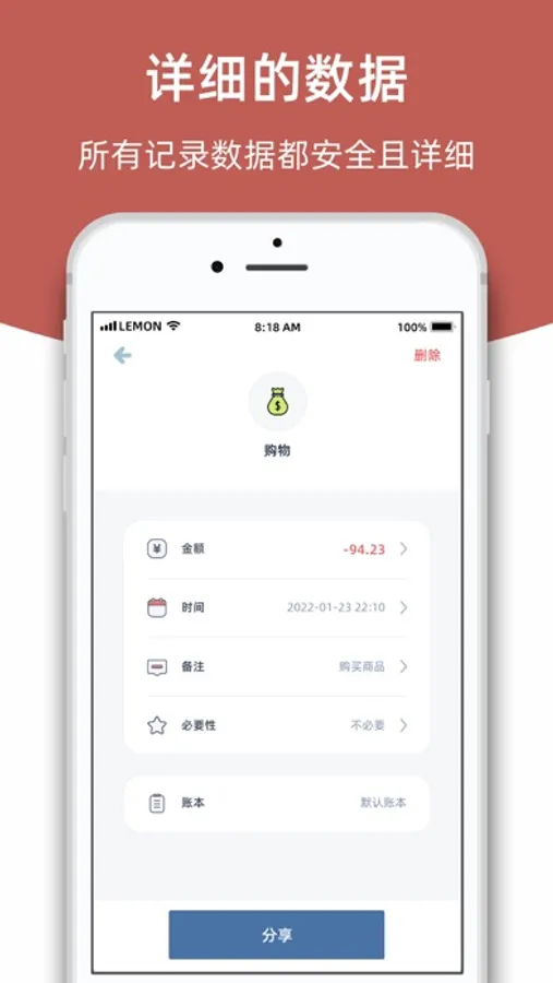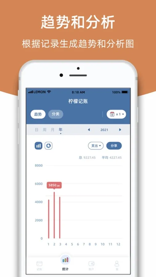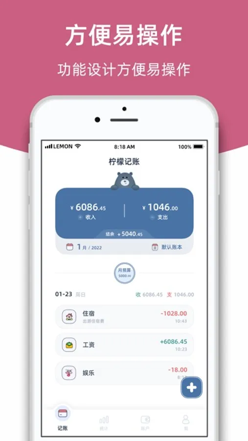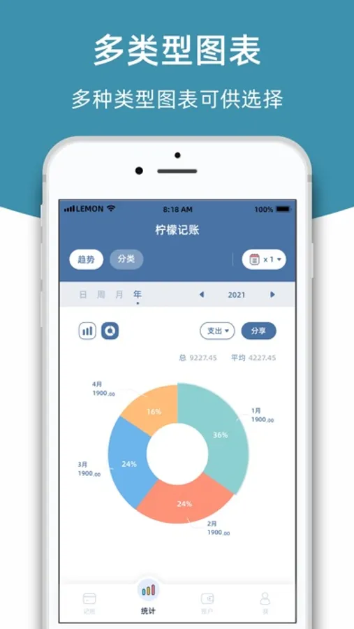 柠檬记账, 一款清新可爱的记账本软件, 可以帮您轻松的管理个人账目信息,并提供多种统计和分析功能,是您得力的理财小助手!