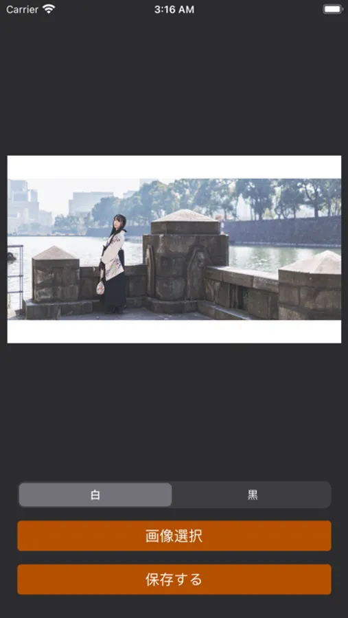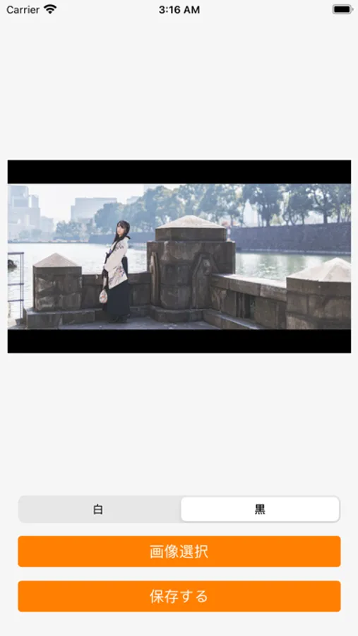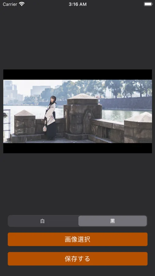シネマスコープの比率で写真をトリミングし、枠をつけて16:9の画像を生成します。