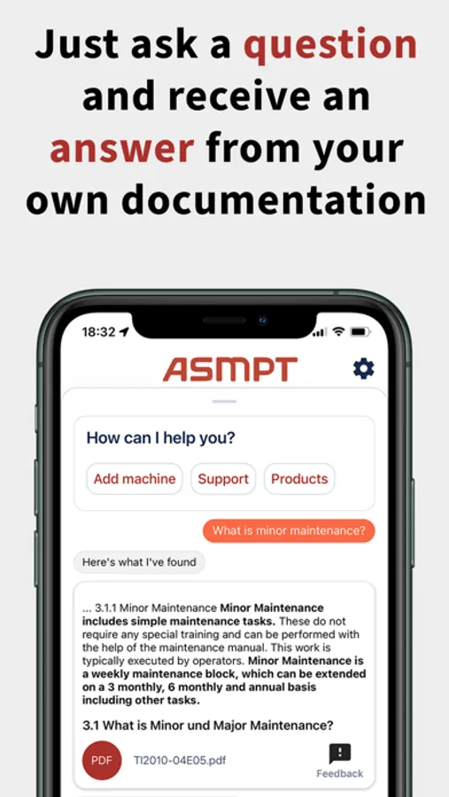 This app gives ASMPT users access to all their machines' information through one single natural-language interface. Simply ask a question in your own words and tap into the whole of ASMPT's institutional expertise!