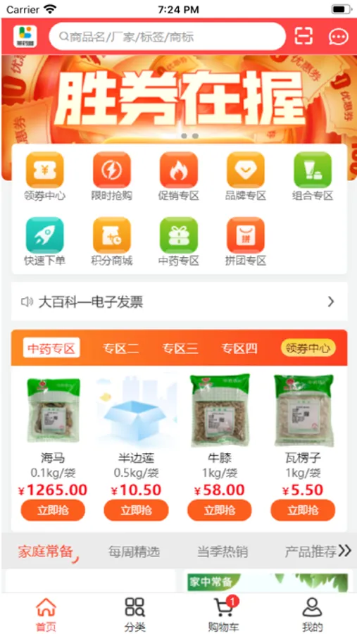 APP选购药品可享受,促销活动、优惠见面、拼团、组合等活动