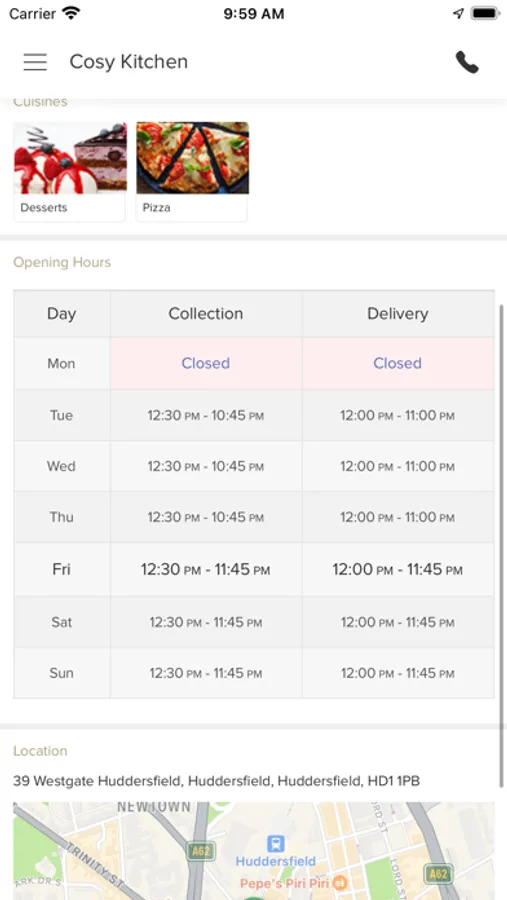Order food online from one of the finest takeaways in town. Here at Cosy Kitchen in Huddersfield, and are proud to serve the surrounding area. We serve a variety of food such as pizzas, burgers, wraps, kebabs and more. You can find our whole menu on our app, filled with mouth-watering dishes and catering for all kinds of different tastes!You can now order online, all your favourite dishes and many more delicious options, and have them delivered straight to your door in no time at all.Order food online from Cosy Kitchen! It's so easy to use, fast and convenient. Try our new, online app which contains our entire takeaway menu.Thank you for visiting Cosy Kitchen in Huddersfield. We hope you enjoy our online ordering app and your food.