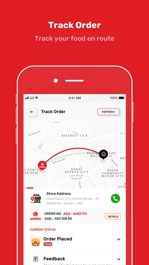Get notified and know your order status LIVE on the app without the hassle of calling.