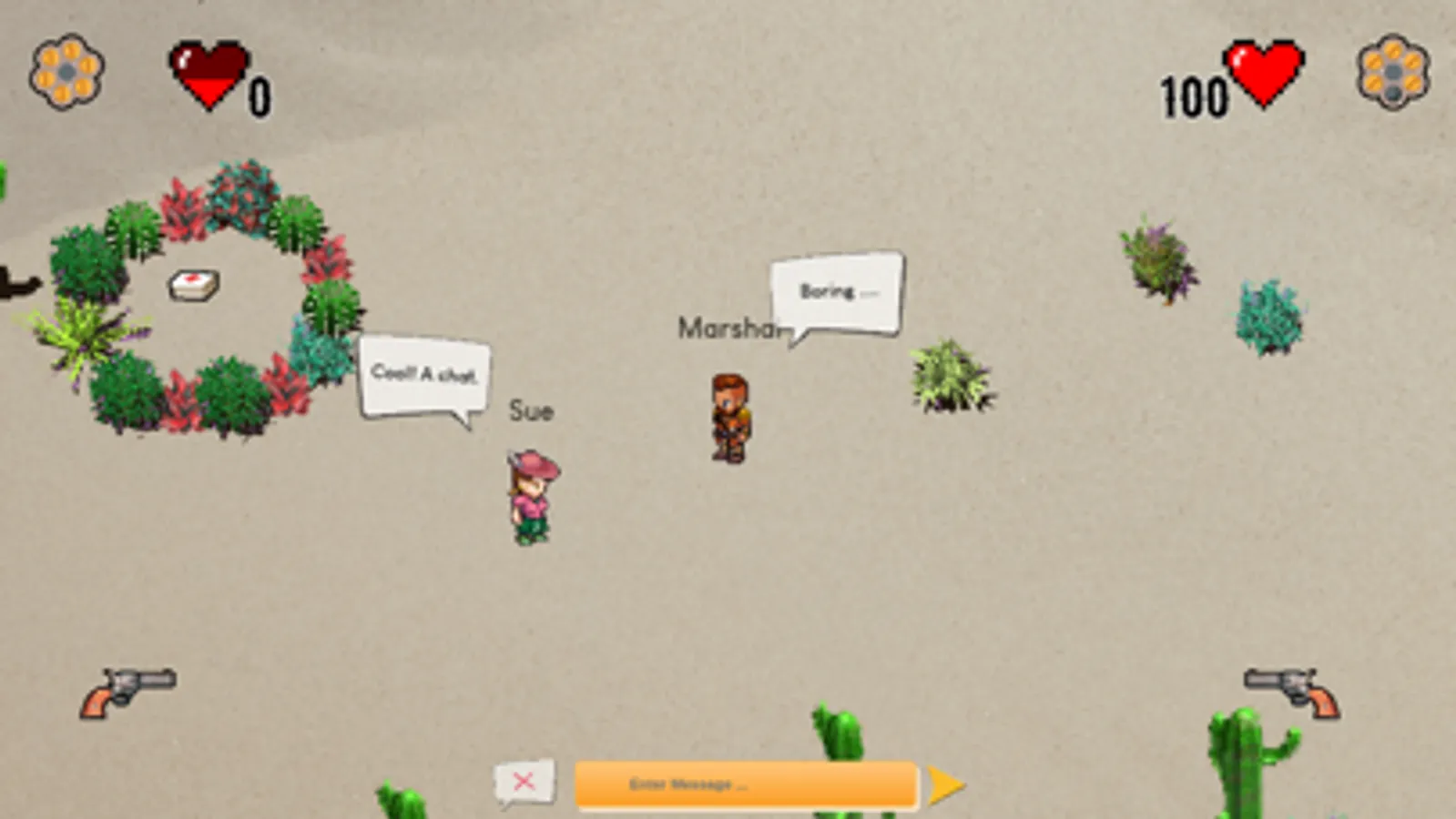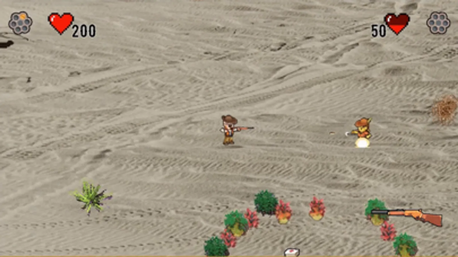 Choose your favorite cowboy or gringo gunslinger from a variety of characters and you’re ready to go – whether you’re playing alone against a computer gringo or online against a friend.