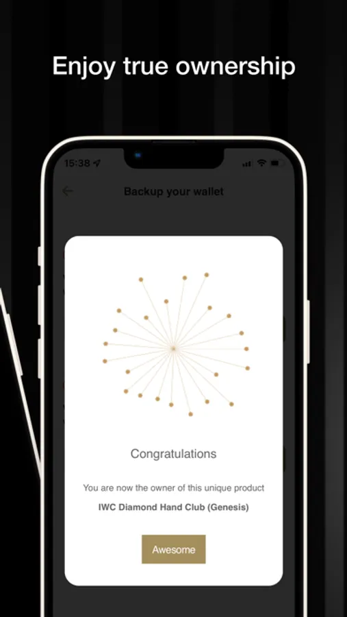 IWC Wallet is a unique interface developed by Arianee to create and access your personnal blockchain wallet. It allows its owners to store and truly own their non fungible tokens (NFTs). Built upon web3 infrastructure, the IWC Wallet allows you to have full control of your data (no tracking).