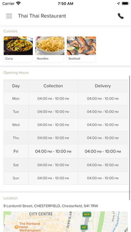 Order food online From Thai Thai Restaurant! It's so easy to use, fast and convenient. Try our new, online app which contains our entire takeaway menu. Thai Thai Restaurant is located in CHESTERFIELD, and is proud to serve the surrounding areas.