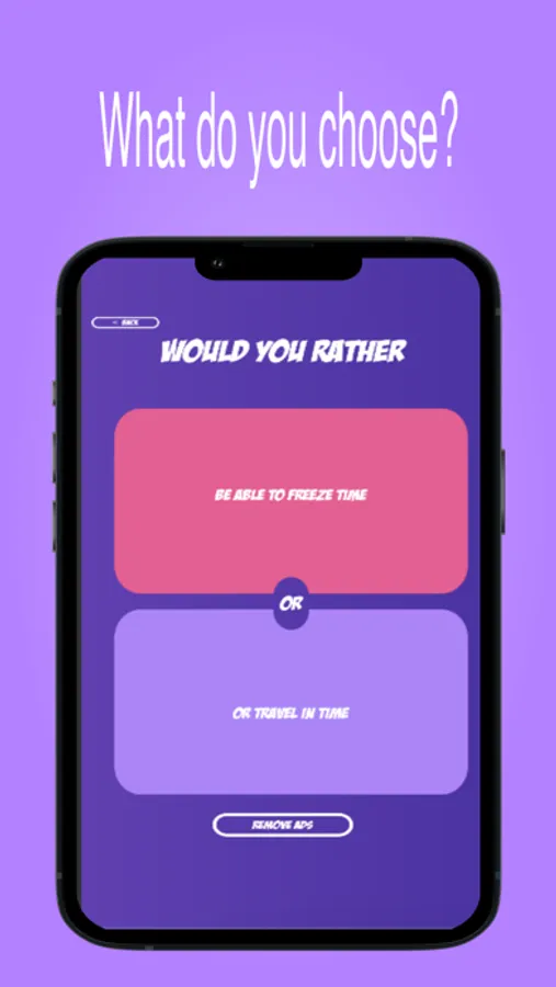 This app contains hundreds of curated would you rather questions that will make you think. View real time stats once you have chosen an option.
