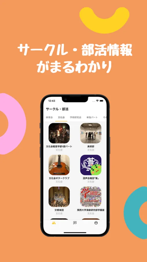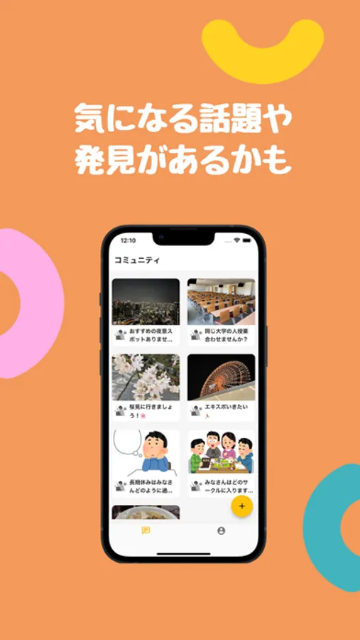 学生生活で気になる話題や言ってみたいところなど、さまざまな興味に応じてコミュニティを作成、閲覧してあなたにピッタリの居場所を見つけられる機能を提供しています。