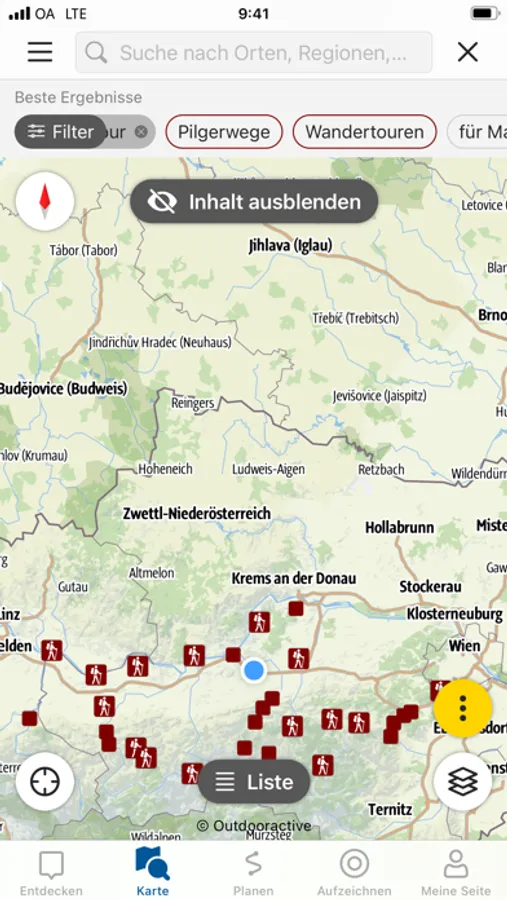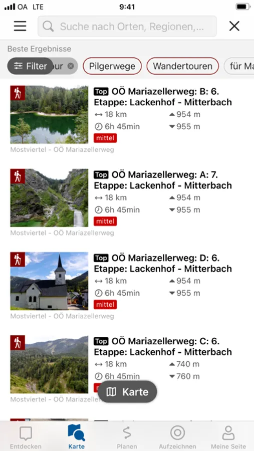 Das Herzstück der App besteht aus den Routendarstellungen folgender Pilgerwege: