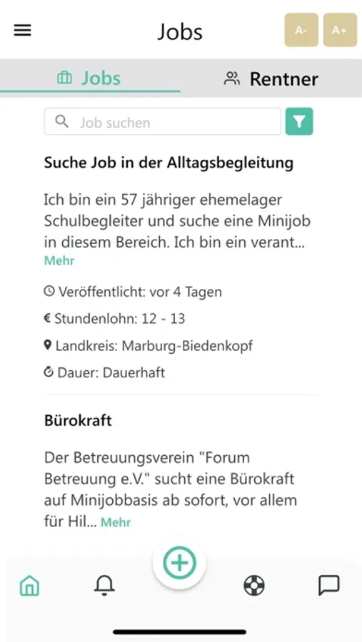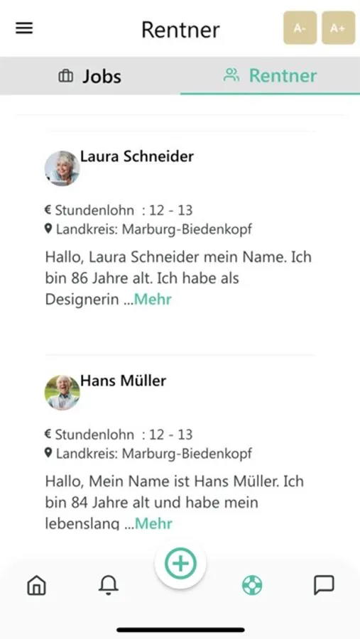 5- Die Möglichkeit, zwischen Rentner’Innen und Jobs direkt über die App zu chatten.