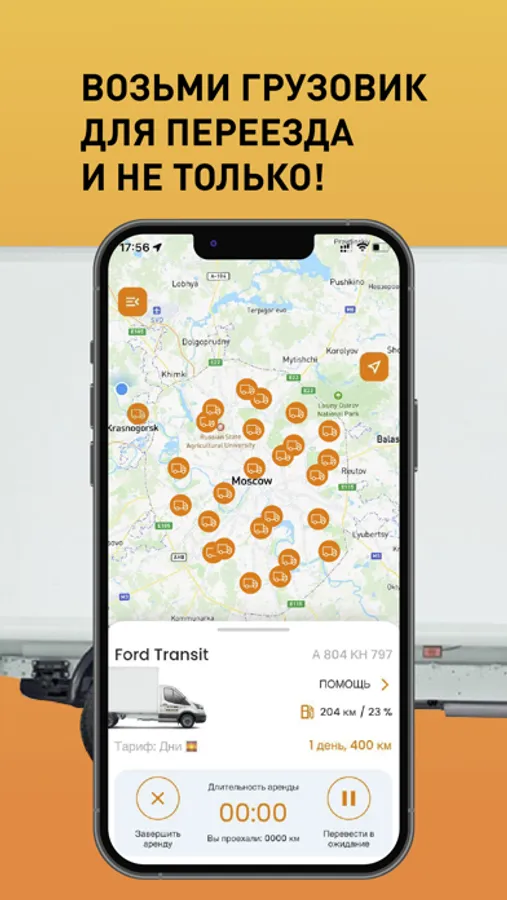 Скачайте приложение, пройдите регистрацию и уже сегодня пользуйтесь грузовиком.