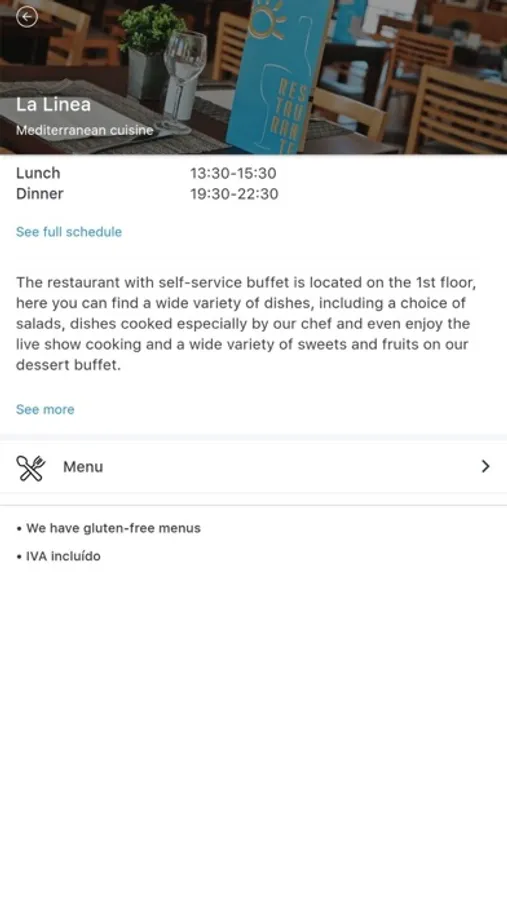 • Book a table in the restaurant and check the schedules