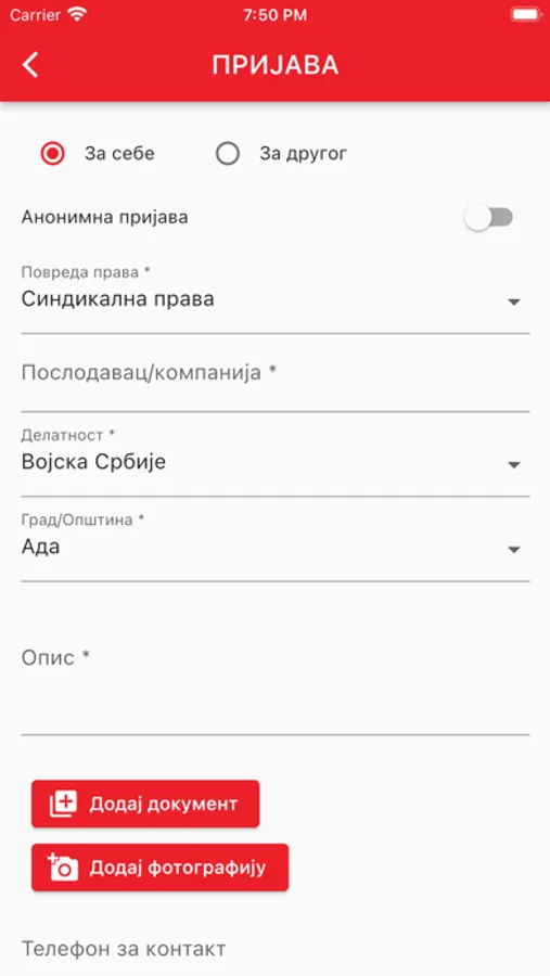 • Prijavljivanje kršenja radnih prava bilo za sebe ili za drugog;