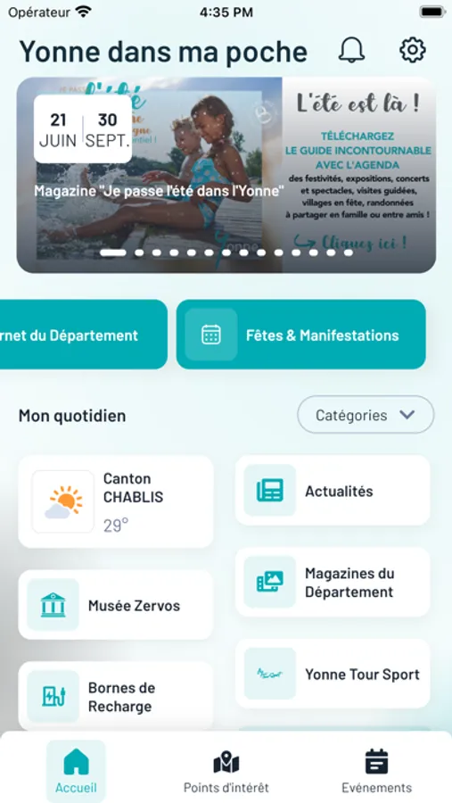 Yonne dans ma poche est une application qui vous propose quel que soit l’endroit où vous vous trouvez, d’accéder à des informations pratiques (agenda, événements culturels et sportifs, circuit touristiques, séances cinémas, horaires d’ouverture de services publics, etc.) et des points d’intérêt (restautants, lieux culturels, etc.).