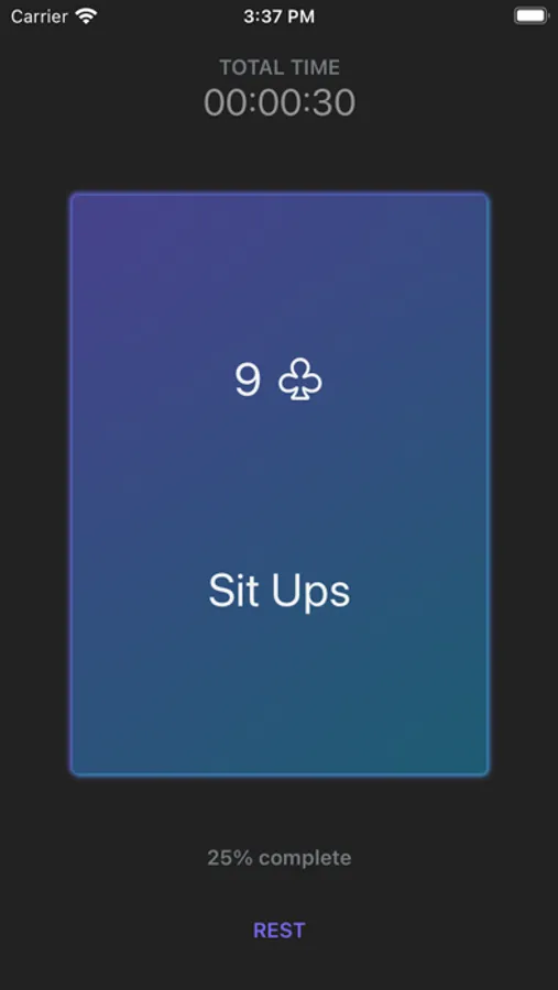 Simply start a challenge and perform the exercise assigned to each suit for the number reps.