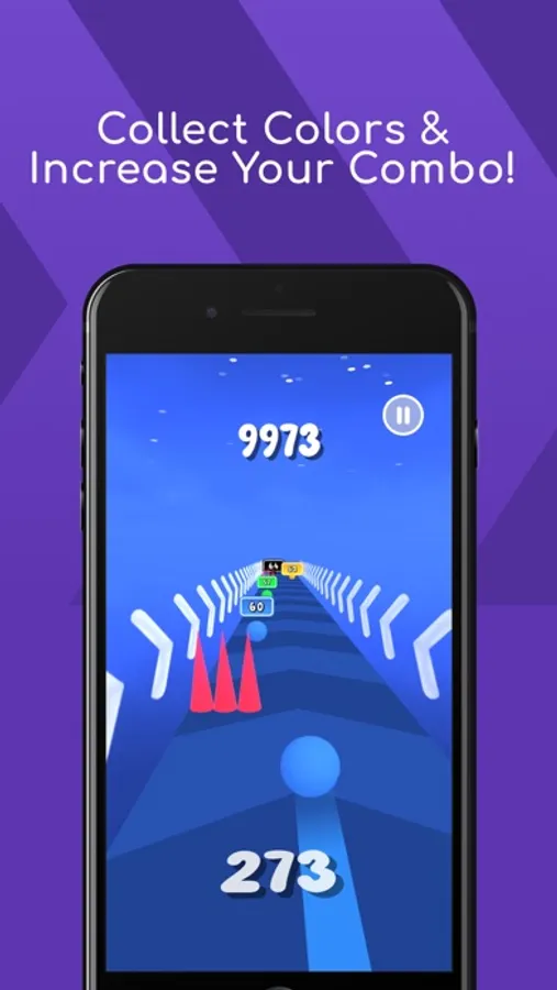 Every time you collect a ball of the same color as your rolling ball, your combo will increase.