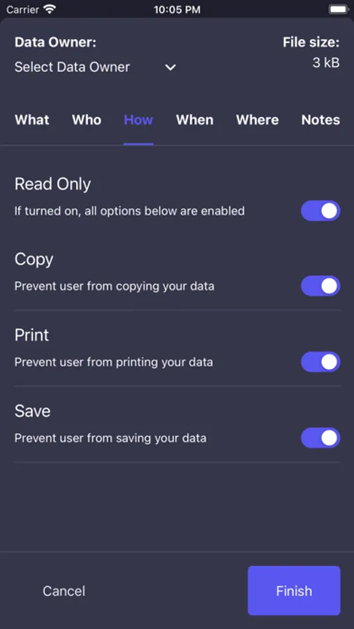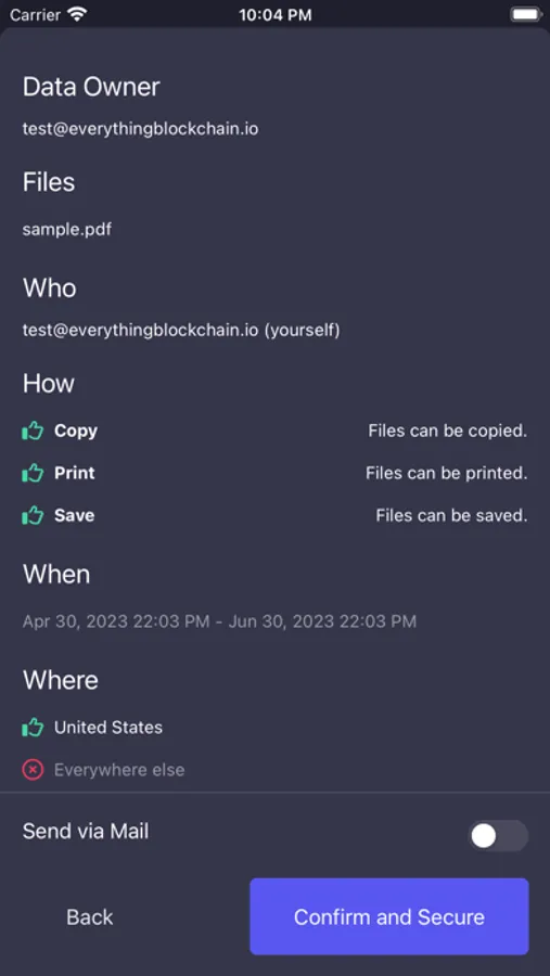Simple and intuitive, you decide WHO has access, HOW it can be used, as well as WHEN and WHERE it can be viewed. Utilizing military-grade encryption, access and usage can be immediately revoked as authorization is updated in real-time. The premium version provides enhanced security controls such as time-fencing, geofencing, read-only limitations, and restricting forward, copy, print, and save.