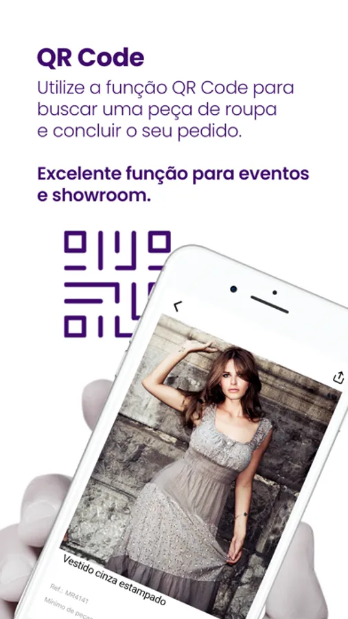 Utilize a função QR Code para buscar uma peça de roupa e concluir seus pedidos. Excelente função para eventos e show room.