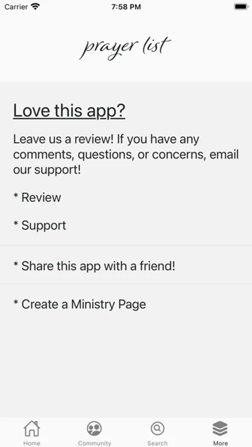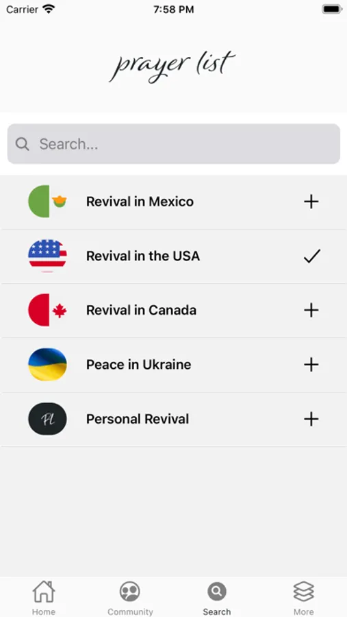 On the Community side of the app, you can subscribe to different prayer lists from around the world - whether it be a church, ministry, or personal revival prayer list. After subscribing, you will be able to view each prayer posted daily from those prayer lists & the prayers from earlier in the week.