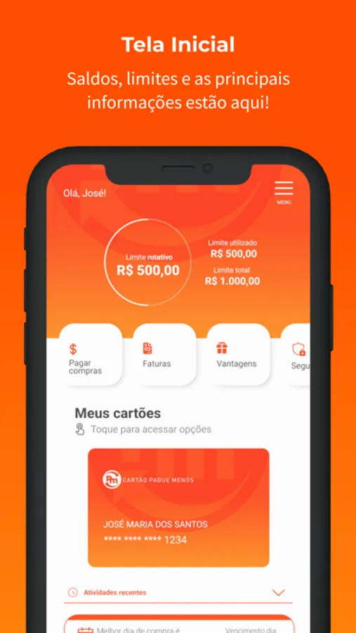 • Visualizar seu saldo disponível para compras no crédito rotativo e parcelado;
