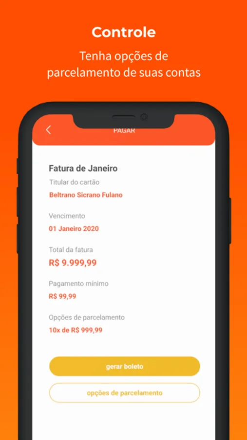 • Ver detalhes das faturas e gerar boleto para pagá-las;