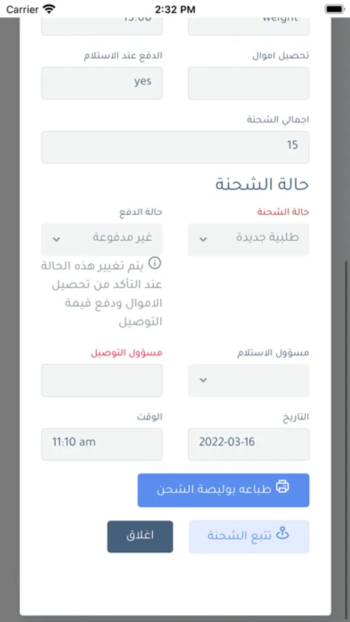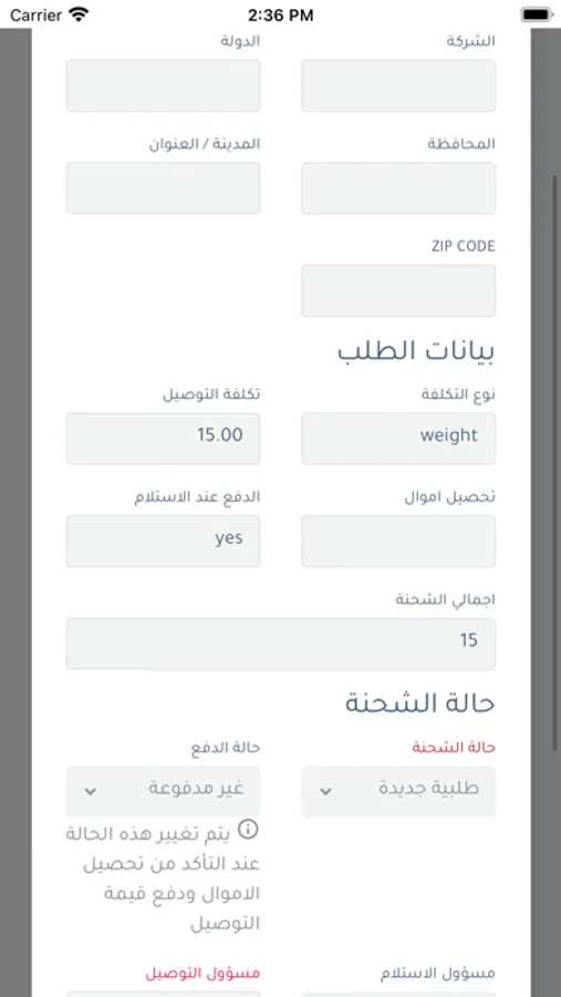 arrival of the shipment order.