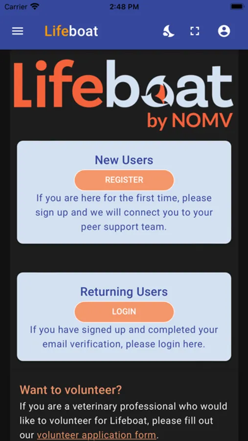 Since 2014, NOMV pioneered online peer-to-peer support and mentorship in the veterinary community across our veterinary peer Facebook forums. Lifeboat extends this model further by providing anonymity for users as they are paired with a team of veterinary professionals trained in peer support who will accompany and mentor these individuals through their crisis. The program modifies the concept of a “warm line” where individuals can expect to receive an asynchronous response from their peers once per day at a minimum (i.e. this is not a synchronous chat service). The Lifeboat volunteers are supported by partnerships with the Veterinary Social Work program at the University of Tennessee and the Department of Psychological Sciences at Auburn University.