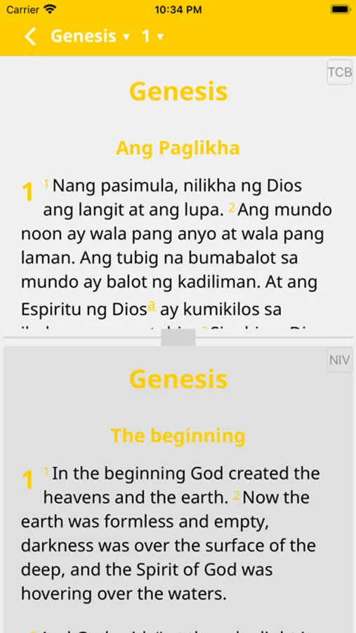 Biblica New International Version in English that can be read side-by-side or verse-by-verse with the Tagalog Translation.