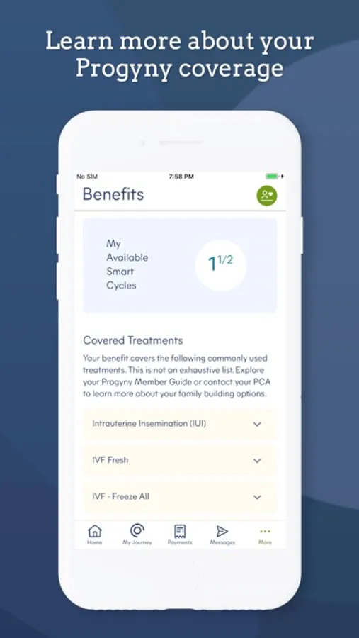 The Progyny Member Portal app is self-service tool to view your benefit details, communicate with your Progyny Care Team, pay bills, and access fertility and family building education.