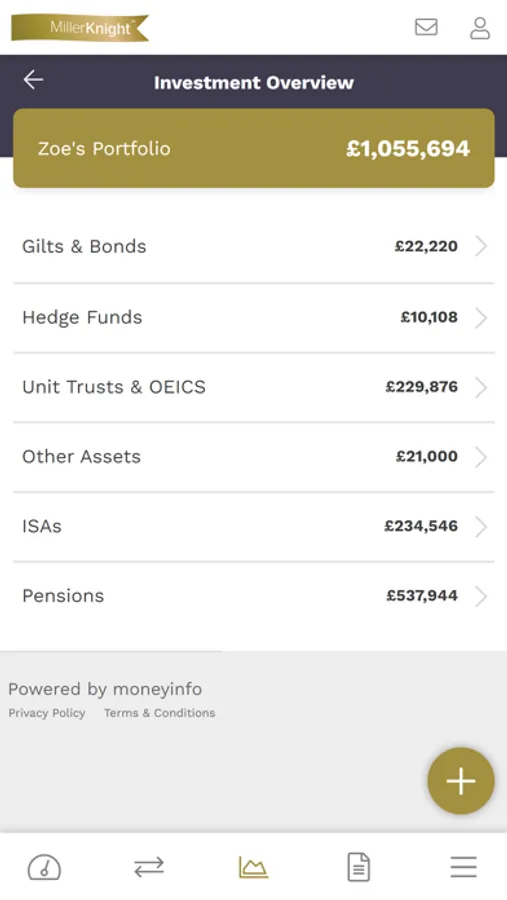 The MK Vault app is a service provided by Miller Knight Ltd and powered by moneyinfo that gives you a complete picture of your financial life. It is exclusive to Miller Knight’s clients.