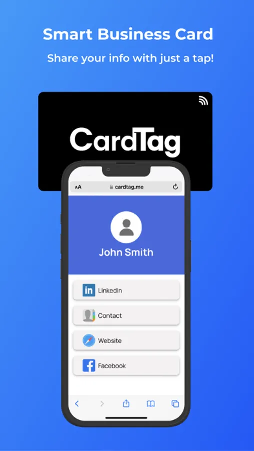 CardTag is a Smart Business Card that will leave impressions everywhere you go! You simply create an account, activate the card in the app and add your links to your profile, DONE!