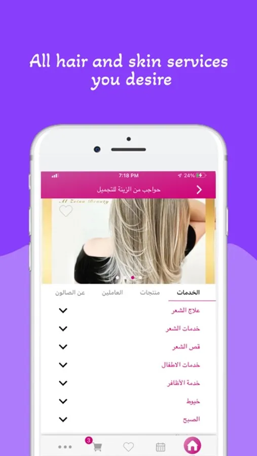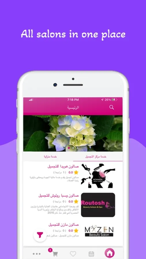 Salons application is the first application that allows you to book salon appointments and choose the services provided by the salons, whether inside the salon or booking home services, as well as buying beauty products and delivering them to the house or receiving them from inside the salon, salonat app is Integrated beauty services