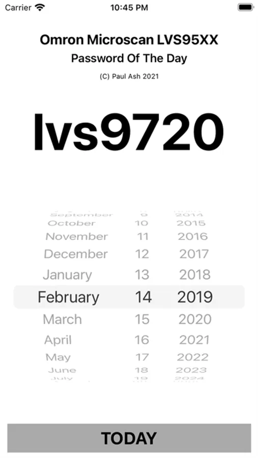 Generates the Password Of The Day for the LVS Omron Microscan 95XX barcode verifier range, and copies it to the clipboard.