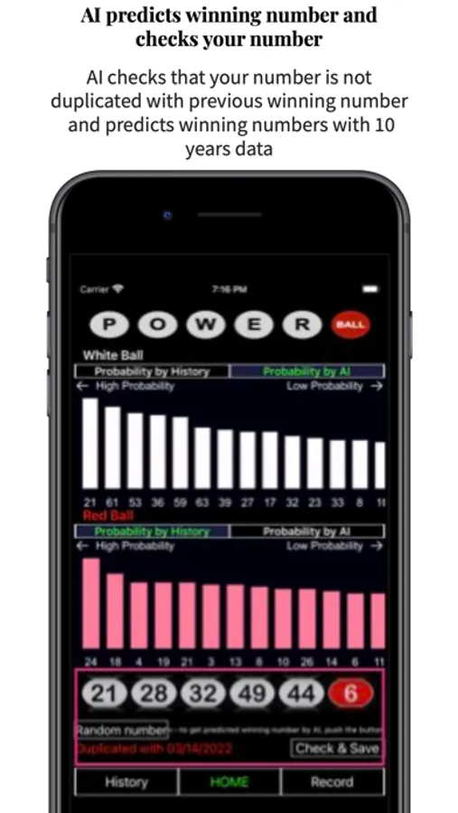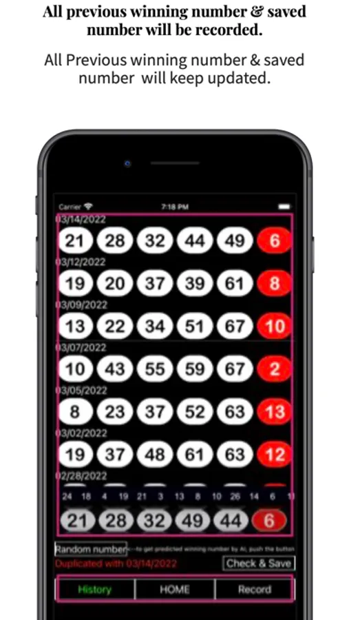 2 . predict Winning number and check your number is not duplicated with previous winning number