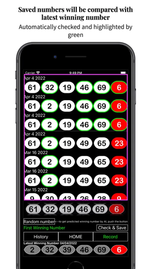 3 . App will show you previous winning number and saved your preferred number in the app.