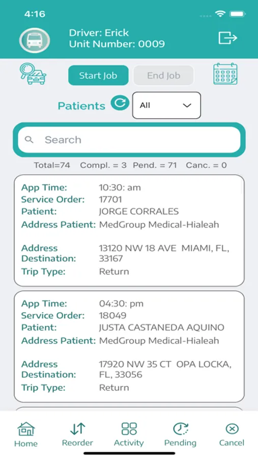 SACS works with patient groups to efficiently manage vehicle occupancy. SACS keeps the driver in touch with patients and dispatcher offices through messages and phone calls. Dispatchers have visibility at all times with the activity of each driver. Another benefit is allowing the driver to define the pick-up time for each patient, and also to make trip cancellations.