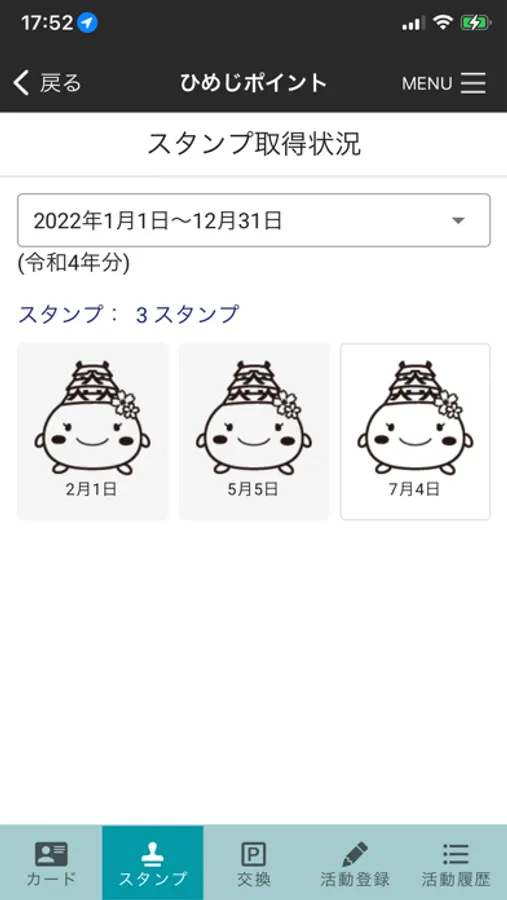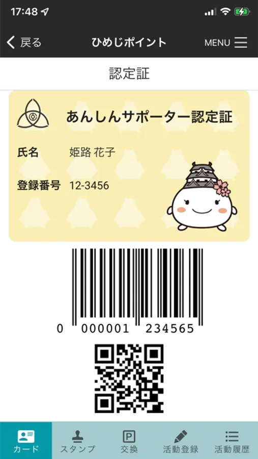 「ひめじポイント」のご案内や、ひめじポイント対象事業の1つである、介護支援ボランティア事業(あんしんサポーター)の活動内容を記録し、いつでも確認することができます。また、活動に応じてスタンプがたまり、自治体マイナポイント(介護支援ボランティアポイント)に交換が可能です。