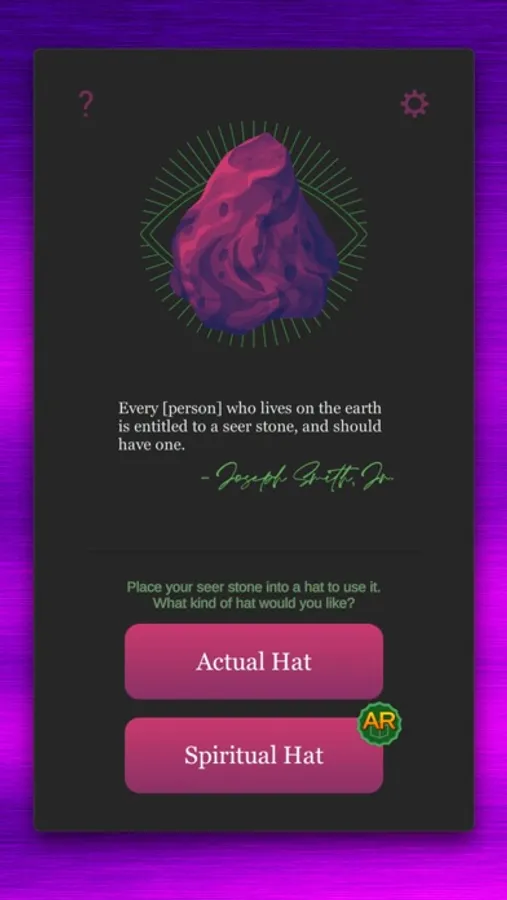 Simply tap the button to locate your unique stone. Each person's Seer Stone is as unique as a patriarchal blessing. Once you have your stone, place it in a hat and block out the light with your face. Who knows what God has in store for you!