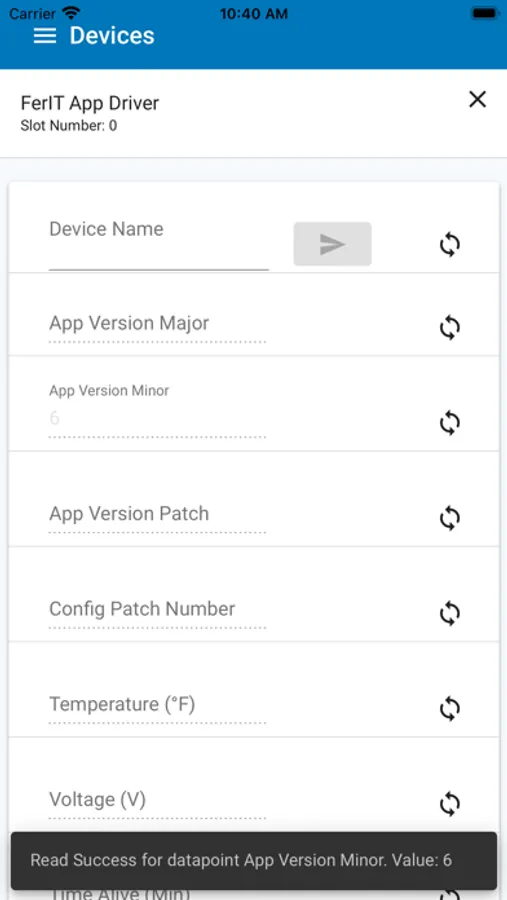 The app is intended for field operators to interact with on-farm FerIT devices with Bluetooth. The operations supported are polling tags, set points, and updating firmware.