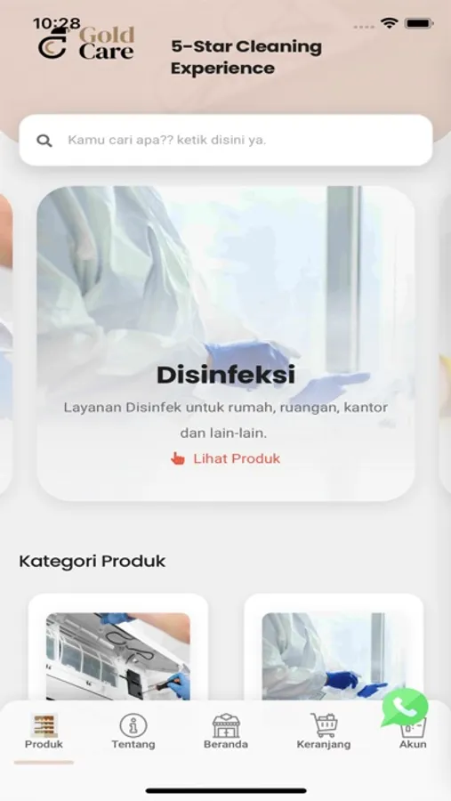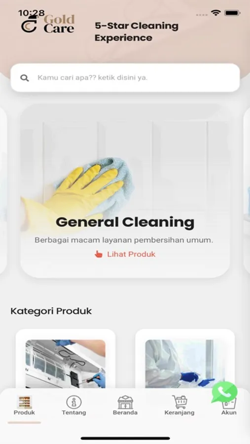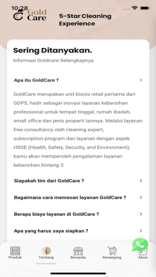GoldCare merupakan unit bisnis retail pertama dari GDPS, hadir sebagai inovasi layanan kebersihan professional untuk tempat tinggal, rumah ibadah, small office dan jenis properti lainnya. Melalui layanan free consultancy oleh cleaning expert,