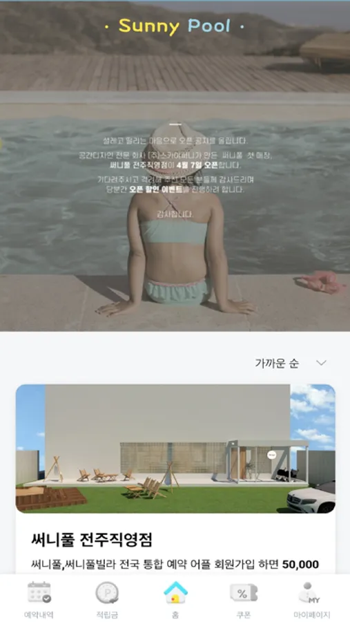 “SUNNY POOL” 브랜드를 런칭하며 예약 APP을 출시 했습니다.