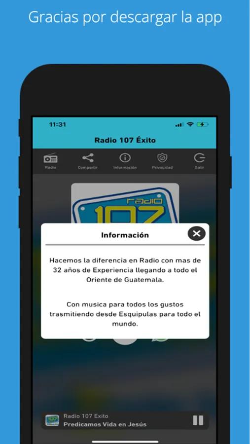Gracias por escuchar Radio 107 Éxito
