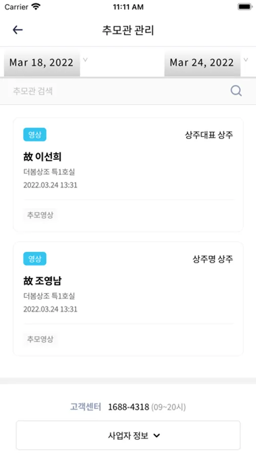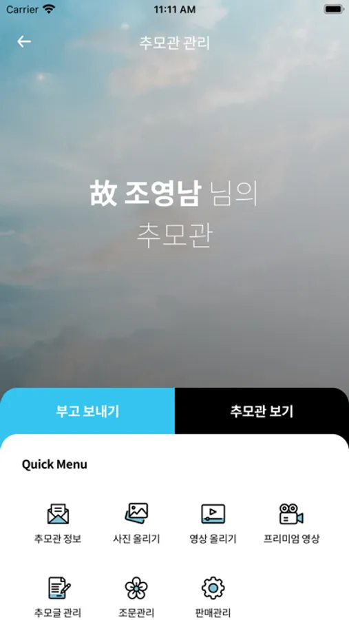 빈소∙고객별로 생성된 추모관에서 부고,사진,영상,조문 등 다큐다의 모든 서비스를 관리할 수 있습니다.