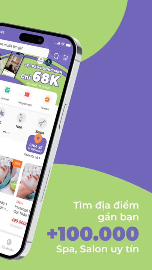 App đặt lịch làm đẹp tại các spa, salon, nails, phòng khám, thẩm mỹ viện với hơn 5000+ địa điểm làm đẹp trải dài rộng khắp các tỉnh thành, nhiều tính năng rất nổi bật như TÌM KIẾM, ĐẶT HẸN, THANH TOÁN, ĐÁNH GIÁ một cách nhanh chóng và tiện lợi nhất. Là cầu nối giữa các chủ doanh nghiệp cung cấp dịch vụ đến với khách hàng thật tốt nhất.