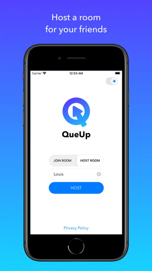 QueUp allows friends to build a collaborative music playlist, everyone can add their favorite songs. Link Spotify, connect the host device to a speaker, and QueUp with friends for the best experience!