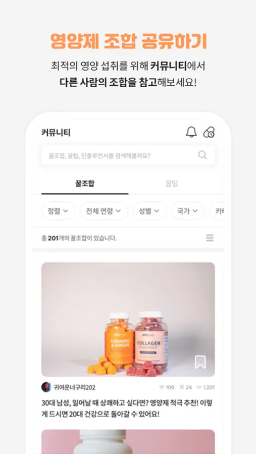 [커뮤니티] 다른 사람들과 영양제 조합과 꿀팁을 자유롭게 공유해보세요!