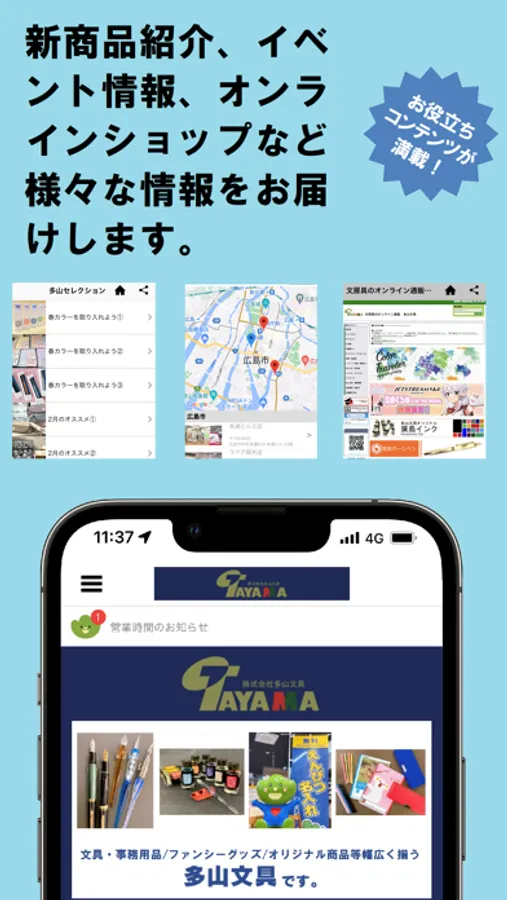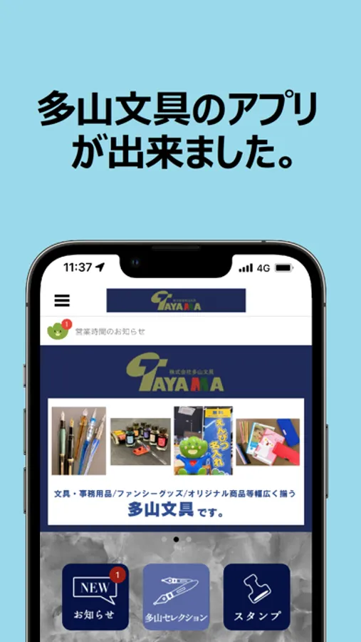 「多山文具」公式アプリでは、各店舗の最新情報やお得なクーポンを随時配信しております。